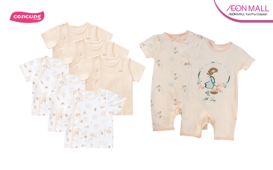 Concung là chuỗi cửa hàng chuyên đồ cho mẹ và bé lớn nhất Việt Nam, với nhiều chi nhánh tại AEON MALL Tân Phú Celadon. Tại đây, ba mẹ dễ dàng tìm thấy đầy đủ các loại quần áo sơ sinh, từ áo body, áo cài chéo, đến bao tay – bao chân. Các đồ sơ sinh này thường sử dụng chất liệu cotton mềm mại, đường may tỉ mỉ, phù hợp cho cả bé trai và bé gái. Ngoài ra, Concung thường xuyên có chương trình khuyến mãi hấp dẫn, hỗ trợ ba mẹ mua sắm tiết kiệm hơn.