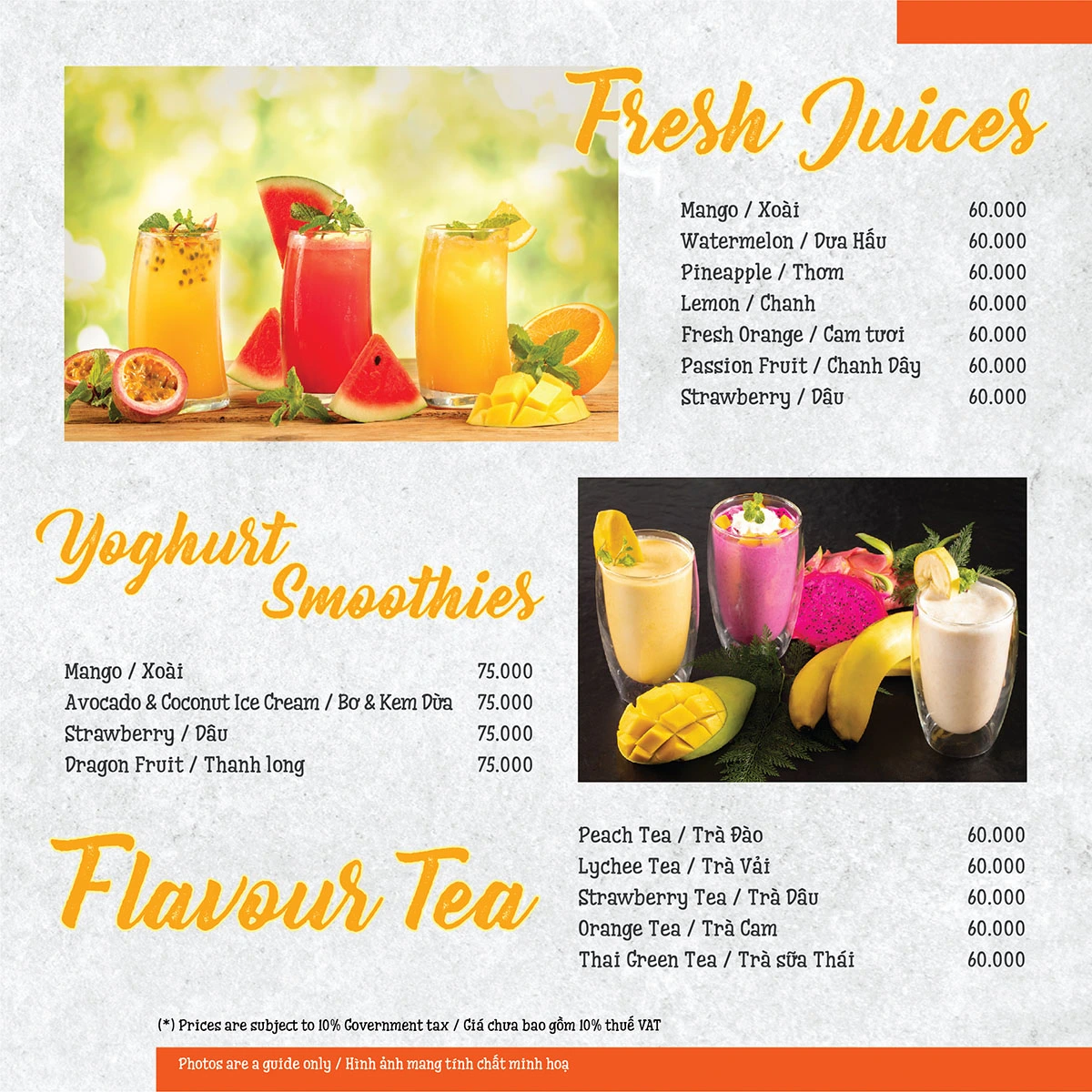 Menu nước ép, smoothies và trà