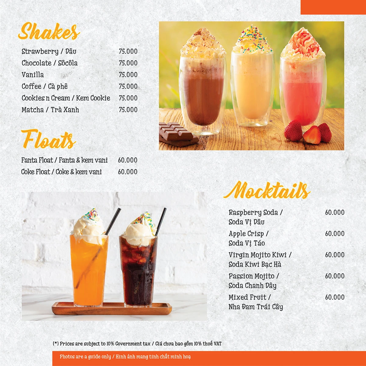 Menu Shakes, Floats và Mocktails