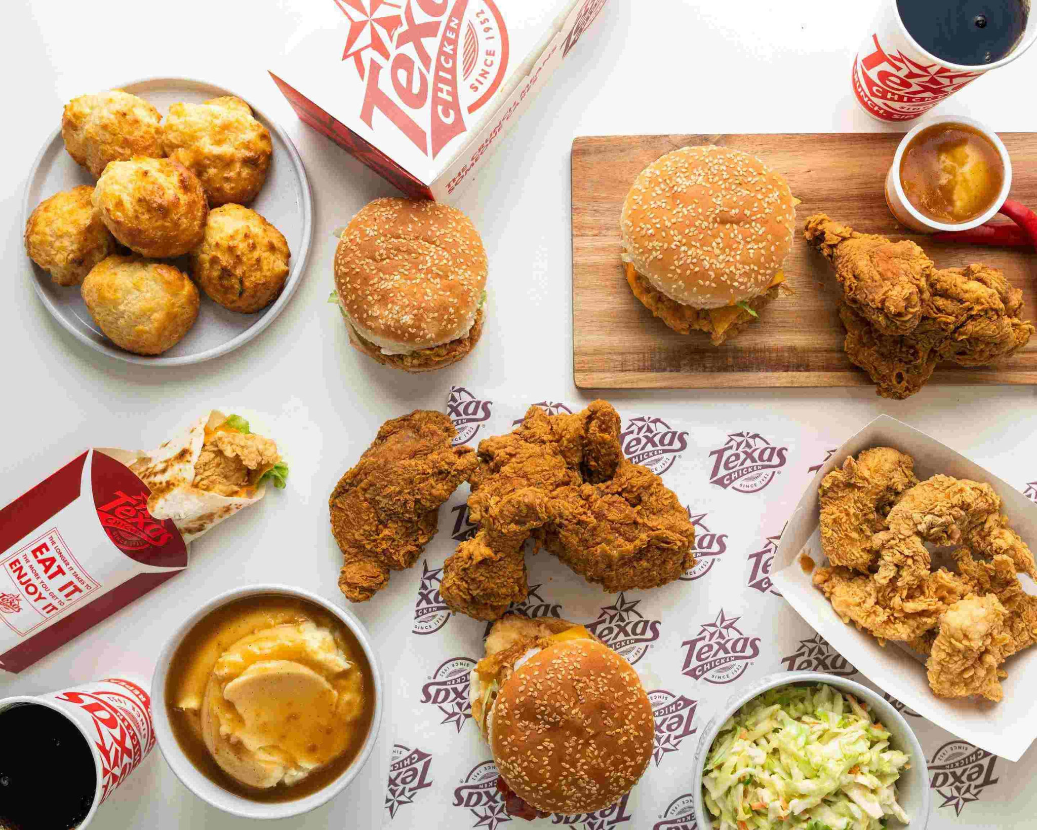 Burger tại Texas Chicken luôn được yêu thích nhờ lớp bánh mềm, nhân đầy đặn và hương vị đậm chất Mỹ. Từng chiếc burger đều được kẹp bởi thịt gà giòn rụm hoặc nhân tôm, kết hợp cùng sốt đậm đà, rau tươi mát, mang đến bữa ăn nhanh gọn nhưng vẫn trọn vẹn hương vị.